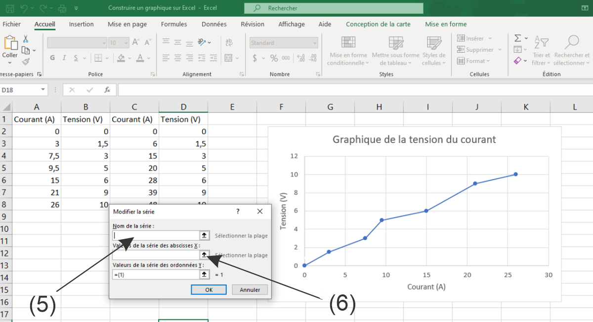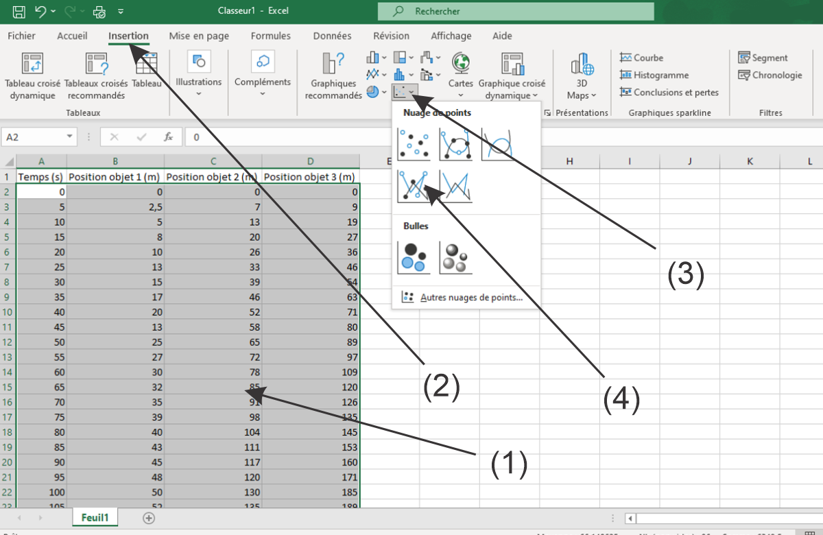 Ensuite, à l'aide de la souris, définir la plage contenant ces données (en