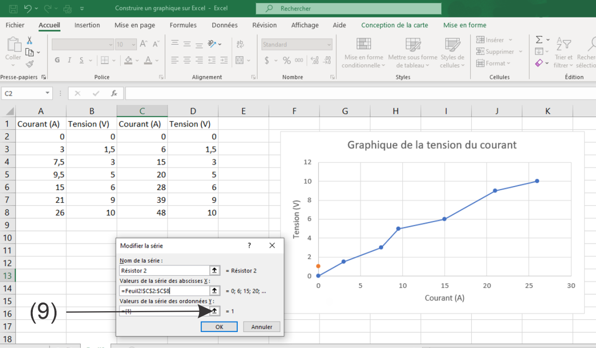 Valeurs de la série des ordonnées Y... (sur la flèche située à
