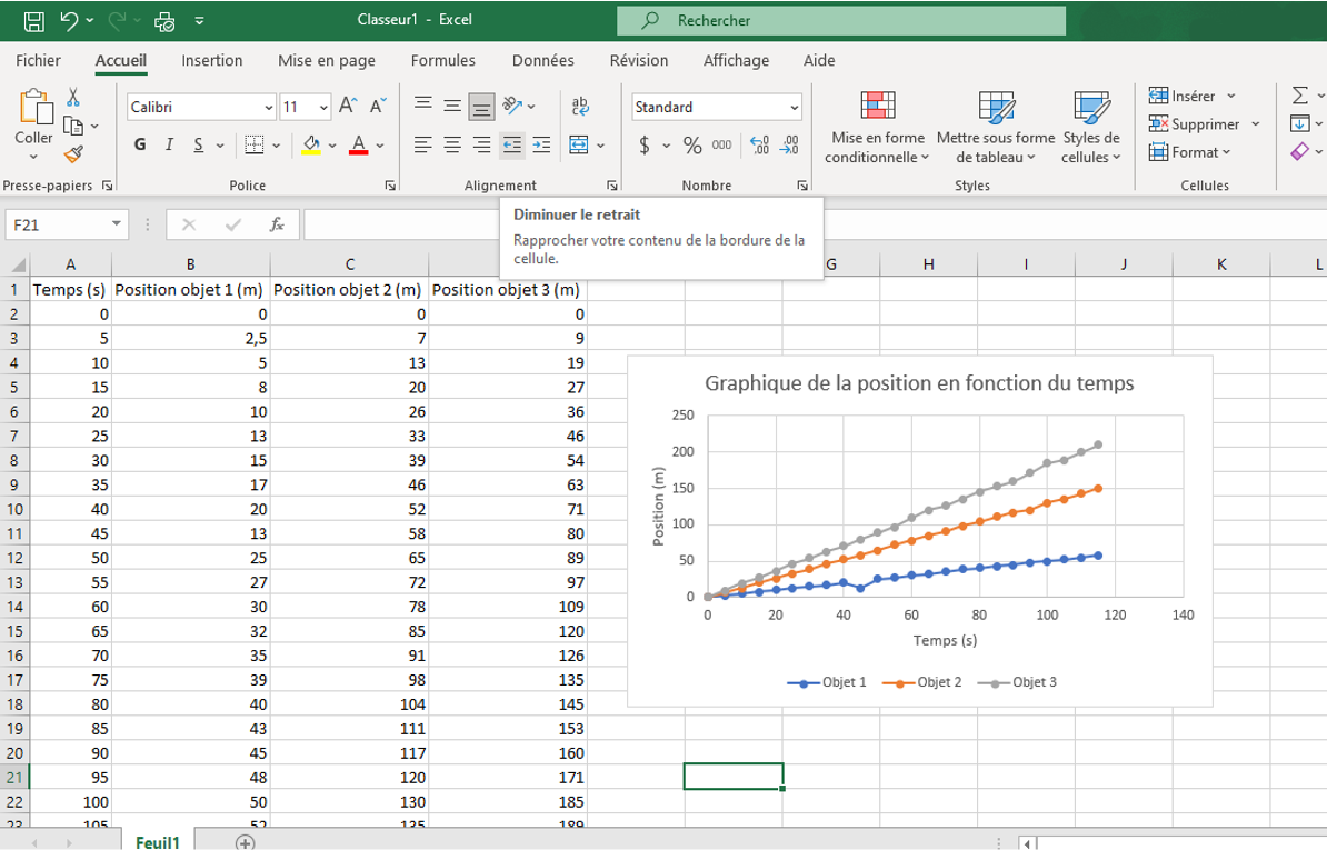 seront en "y". On devrait voir ces données apparaître dans la fenêtre